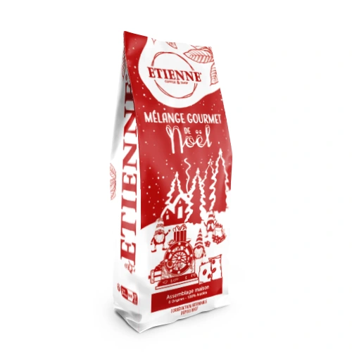 Ce café est issu d’un assemblage de 6 variétés d’Arabica qui proviennent d’Afrique, d’Amérique du Sud et d’Amérique centrale. Il est de coutume chez les torréfacteurs de créer un «blend» («mélange» en français) pour Noël. Chez ETIENNE, bien plus qu’une coutume, le mélange gourmet de Noël est une véritable institution. Depuis 1907, les torréfacteurs se succédant ont tous perpétué le savoir-faire de la maison ETIENNE en matière d’assemblage. Ce mélange gourmet de Noël est un nouveau mélange de 6 arabicas, véritable trait d’union entre l’Afrique et l’Amérique du Sud.