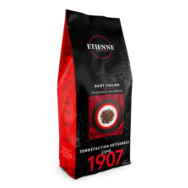 Cet assemblage café Goût Italien, en grain ou moulu, est riche et persistant. Le « café italien » est idéal pour les amateurs d’expresso corsé et savoureux. C’est un assemblage de 70% d’Arabica (3 variétés d’Arabica) et de 30% de Robusta. Les 3 variétés d’Arabica apportent finesse et richesse aromatique. Le Robusta apporte force et robustesse.