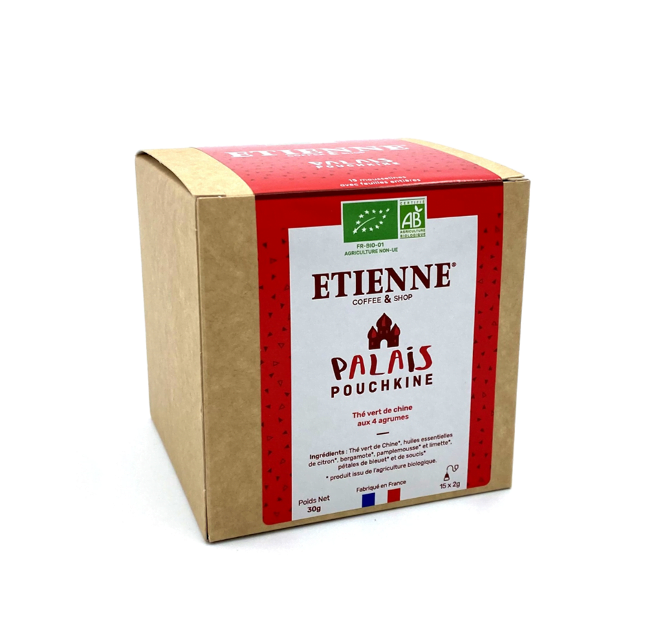 Thé vert de Chine, puissant et fruité, aux 4 agrumes (citron, bergamote, pamplemousse, limette).