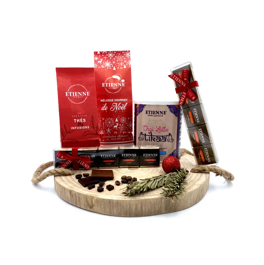 Ce coffret Gourmandise est une fine sélection des produits phares de la Maison ETIENNE. Parce que Noël est souvent synonyme de gourmandise et de plaisir, ce coffret ravira toutes celles et tous ceux qui aiment les saveurs réconfortantes de l’hiver : épices, chocolat, amande ou encore cerise.