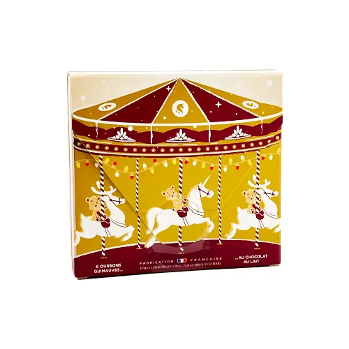 Qui n’a jamais rêvé d’un ourson en guimauve et chocolat au pied du sapin ? Monbana sublime ce classique intemporel pour un plaisir encore plus intense. Chaque ourson est une petite merveille : le cœur de guimauve incroyablement moelleux est enrobé d’un fin chocolat au lait, connu pour sa douceur et son onctuosité. C’est l’équilibre parfait entre la tendresse et la gourmandise, une bouchée qui évoque instantanément Noël.