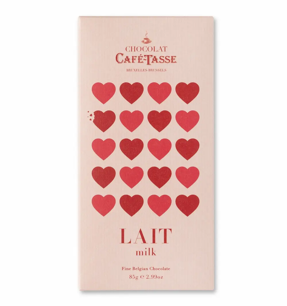 Succombez à la tentation de cette tablette de chocolat au lait 38% de cacao fabriquée avec amour ❤️ par le célèbre chocolatier belge “Café-Tasse”. Cette tablette de chocolat au lait fera à coup sûr fondre de plaisir (et d’amour?) tous les gourmands et les gourmandes. À s’offrir ou à offrir, cette tablette de chocolat au lait ravira toutes les personnes chère à votre cœur.