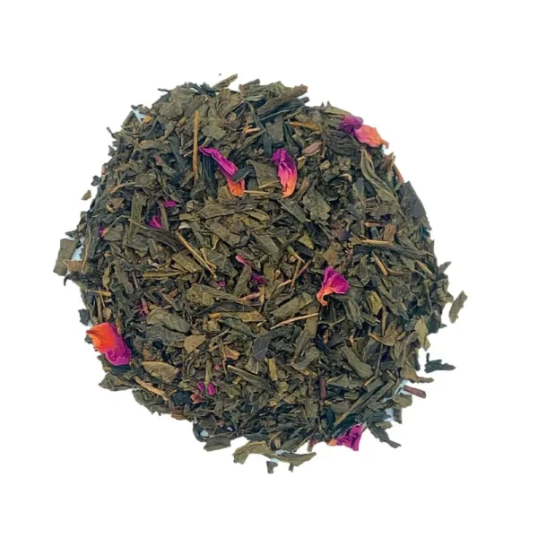 Thé vert Sencha de Chine, vanille, cerise, pétales de rose