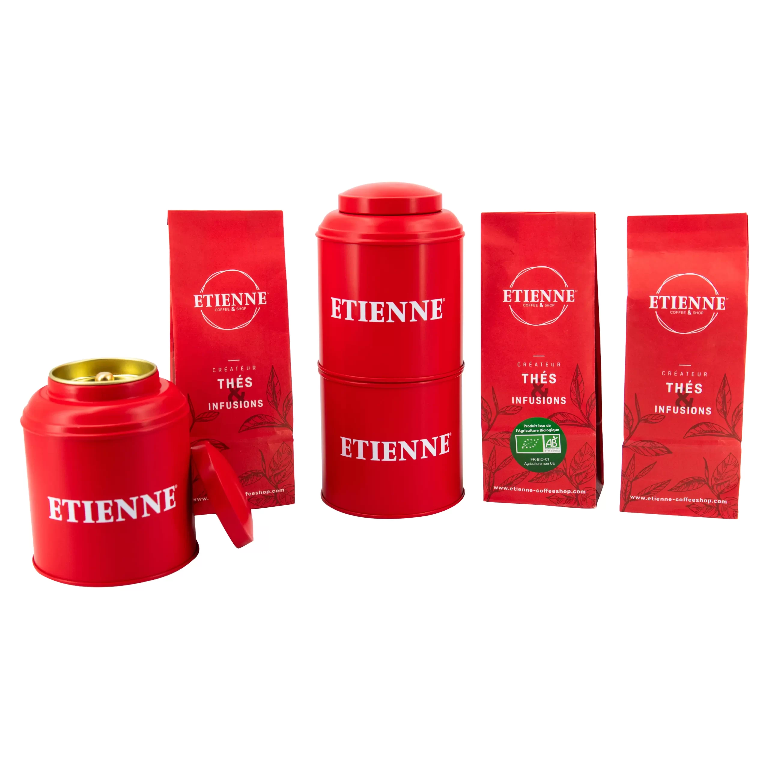 Offrez un cadeau original avec cette Trilogie de Noël signée ETIENNE. Composée de deux thés et un rooibos sélectionnés avec soin et de trois jolies boîtes à thé qui vous permettront de conserver le thé en vrac dans les meilleures conditions :