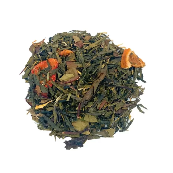 Thé vert Sencha de Chine et thé blanc Paï-Mu-Tan, fraise, ananas, mangue, orange, calendula